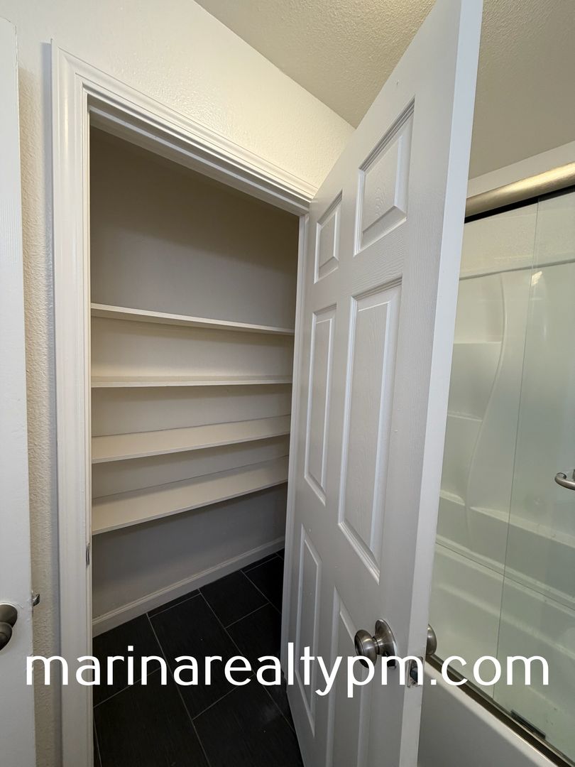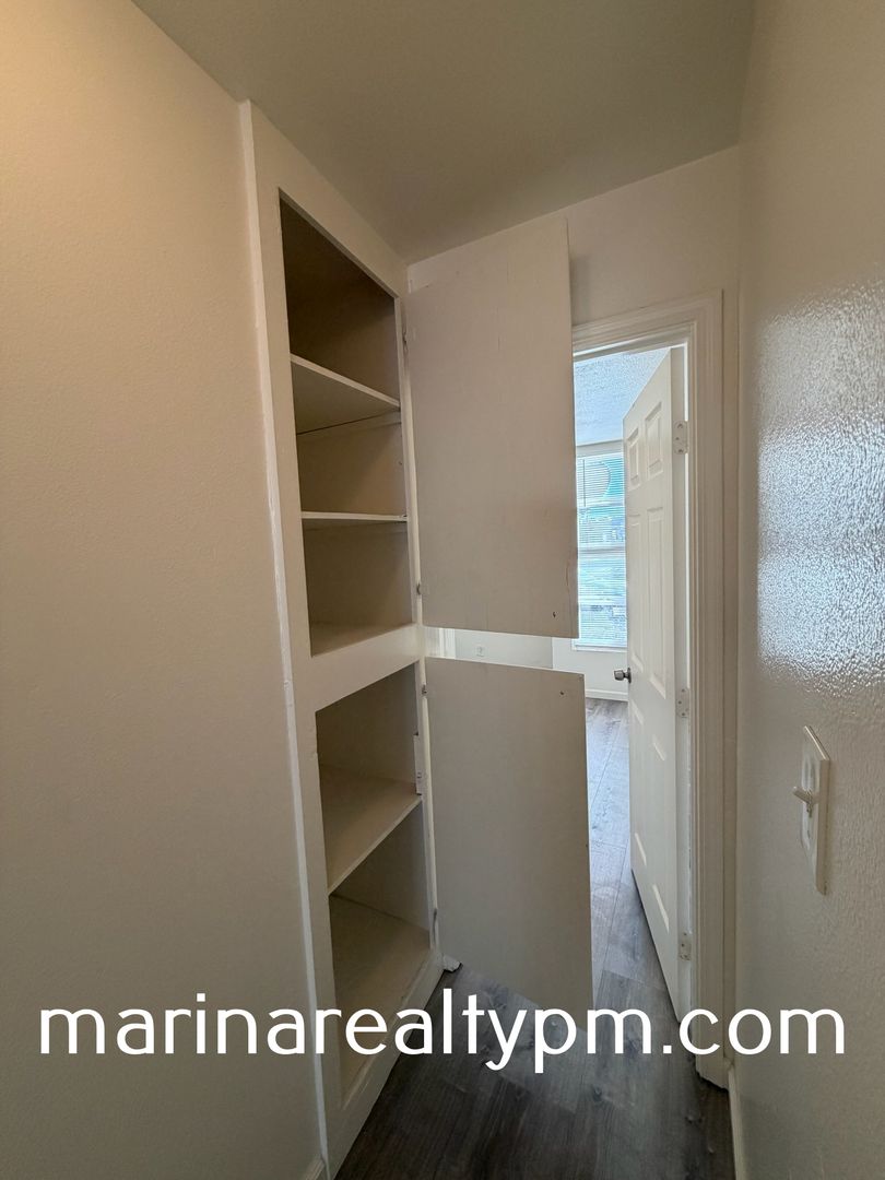 This downstairs two bedroom one bath apartment is freshly painted throughout. Includes one carport space. Living room, kitchen, bathroom and hallway have laminate flooring. Enclosed patio for entertainment. Close to restaurants, supermarket and retail stores.